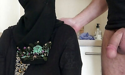 Muslim teenie in Burka sucks brother's pink cigar and gets fucked