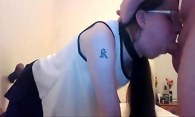 Brunette crossdresser in black stuff was throating cock in the hotel