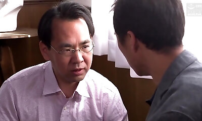 Shy Japanese damsel sucks stranger's spunk-pump while cuckold is watching