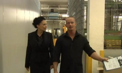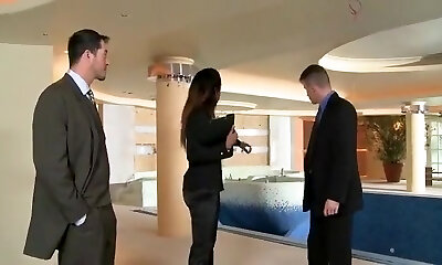 During a break a babe takes on two guys at once and enjoys it