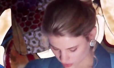 Nessa Devil in fledgling wife giving a blowjob in the outdoors