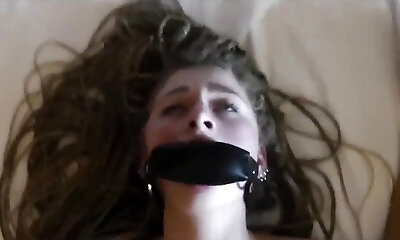 Kinky girl tries to ride dildo of incomprehensible size with her tight pussy