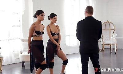 Flexible dancers Gianna Dior and Emily Willis poked by one dude