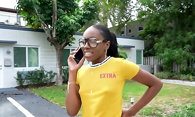 Chocolate senorita with glasses still rides the dick like a nubile