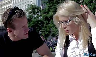 horny blonde MILF in glasses gets fucked in the office