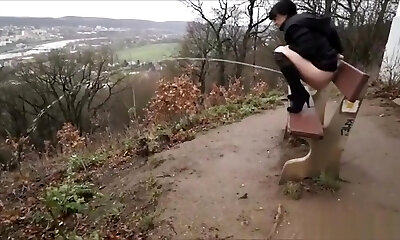 Insatiable brunette stranger Lyen Parker pisses in her pants outdoors