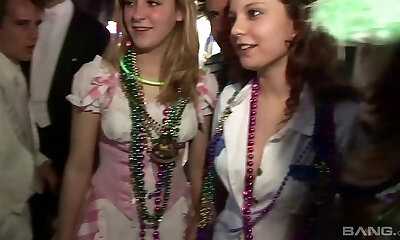 Hot Slender Blonde Bride Enjoys Public Sapphic Sex With a Busty Strip-dancer At the Bachelorette Party