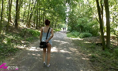 Hot blonde bitch Veronica pleases herself with fingerblasting outdoors