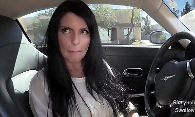 Uninhibited blonde Hannah Hays pokes her beau in the back seat