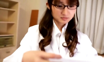 Nerdy Chinese tutor Minami Kitagawa stands on knees and gives adorable head