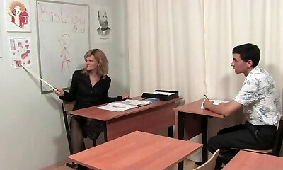 Phat boobs teacher taught her student "How to do sex"