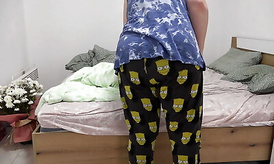 Pressing boobs in bra make some erotic movement sleeping brother and step-sister