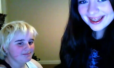 Chubby brunette lesbo got her wet labia teased by her blonde fat GF