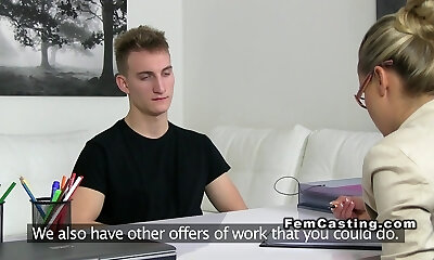 Female agent giving footjob office feet