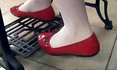 bella dai capelli castani ninfa petra si tinge di rosso appartamenti durante il lavoro con la macchina da cucire