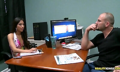 divertente lunghi capelli cinesi, capelli scuri e imai yoshimi ottiene peloso vag liscio rasato