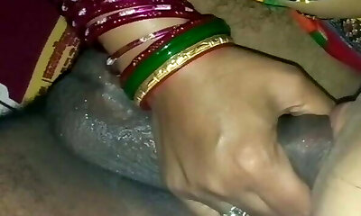 Babe with trimmed cootchie holds husband's cock like a sword and makes him Cum soon